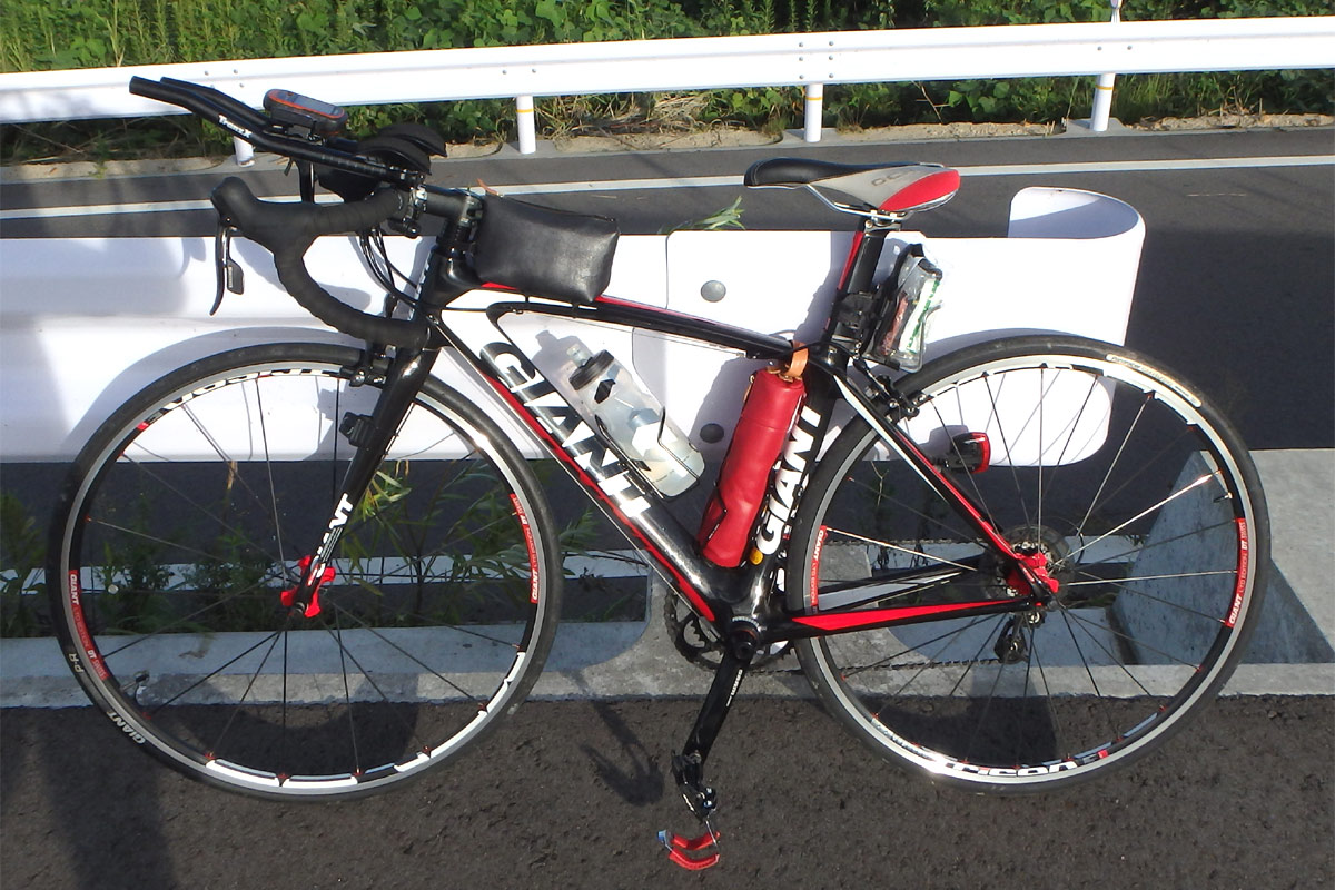 フレーム : GIANT Composite OLD130mm フロントフォーク : GIANT Composite、Full Composite OverDriveコラム BBセット : SRAM GXP Press Fit (BB86) ギアクランク : SRAM APEX 34/50T 170mm チェーン : SRAM PC1031 F.ディレーラー : SRAM APEX 直付用 R.ディレーラー : SRAM APEX シフター : SRAM APEX 10S ブレーキセット : SRAM APEX ブレーキレバー : SRAM APEX ギア : SRAM PG1050 10S 11-26T ヘッドセット : FSA シールドカートリッジ 1-1/8”-1-1/4” ハンドルバー : GIANT CONNECT 31.8 400mm(XS) ハンドルステム : GIANT CONNECT 31.8 80mm(XS) サドル : GIANT PERFORMANCE LITE ◆交換→ VELO VL-1021(GIANT OCR3 2004仕様) △??g:クッション性能が良く、パッド入りレーパン不用 シートピラー : GIANT VECTOR Composite シートクランプ : GIANT Aluminum SEATPIN ダブルボルト ホイールセット : DT SWISS TRICON R1700 Wheelset F※1(750g) R※1(950g) タイヤ(フロント) : GIANT P-R3 700x23C(278g) + KENDA 700x18/23C(93g) ◆交換→Continental GrandPrix 5000 700×25C(223g) + Schwalbe Road Inner Tube タイヤ(リヤ) : GIANT P-R3 700x23C(282g) + KENDA 700x18/23C(90g) ◆交換→Continental GrandPrix 5000 700×25C(227g) + Schwalbe Road Inner Tube ペダル : MKS (ミカシマ) Urban Platform Black※1(310g) + HALF CLIP DEEP(+革)(86+14g) + ネジ(18g) △428g 素の重さ : 7.7kg(Mサイズで) 追加 : ▲ベル GIZA Black HOB06200(32g)、▲バックミラー TANAX VG-3103(40g)、▲テールライト Panasonic SKL090 △??g 追加 : ▲ボトルゲージ MINOURA AB100-4.5※1(36g) + MINOURA PC-500※1(46g)、▲サイコン CATEYE CC-VT210W(54g) + CATEYE Out-Front bracket OF-100 △??g ※1:カタログ値 ※サドルをロンツー向けに交換した以外、 と思ったけど、膝の負担を考えるとスプロケ11-26T→12-30Tもアリかなと。 |